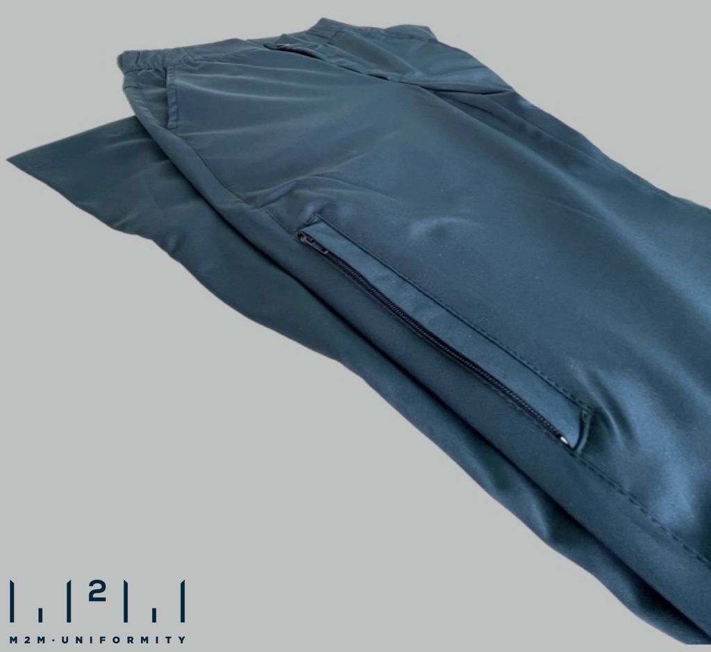 Los Pantalones M2M de uso diario del Boston International School están hechos con material 96% polyester y 4% de Lycra que proveen elasticidad que facilitan el movimiento en el usuario. Cuenta con un acabado tipo peach en el interior para dar una sensación de confort en la prenda. Cuenta con tecnología antifluido que permite que las salpicaduras accidentales resbalen actuando como un escudo protector de la piel. De igual forma gracias a la tecnología de protección solar, protege al usuario final contra los rayos UV, con factor de protección UPF 50.