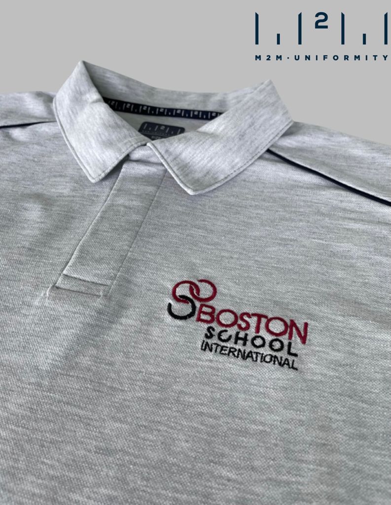 La POLO T-SHIRT M2M para actividades diarias de los alumnos del Boston International School está hecha de material 95% Algodón y 5% Elastano que permite una excelente absorción y expansión rápida del sudor manteniendo al estudiante seco y cómodo después de sus actividades de educación física.
